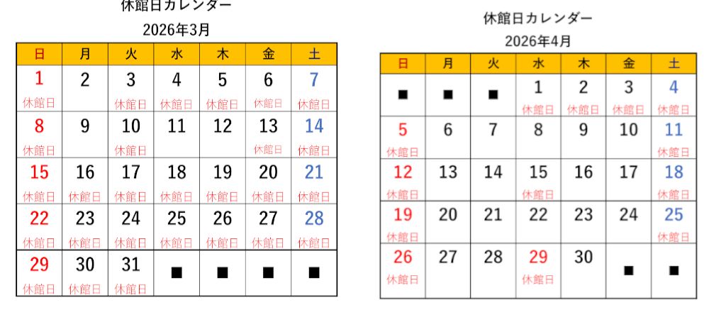 休館日のお知らせ