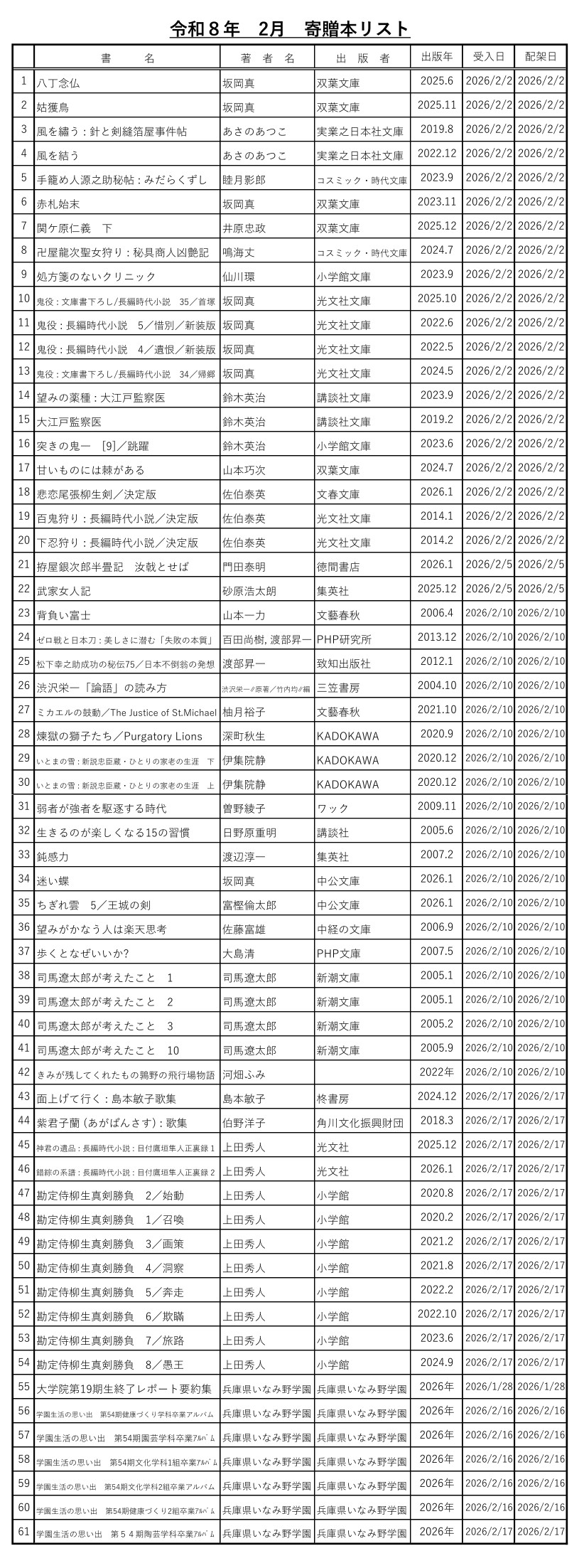 新規寄贈本