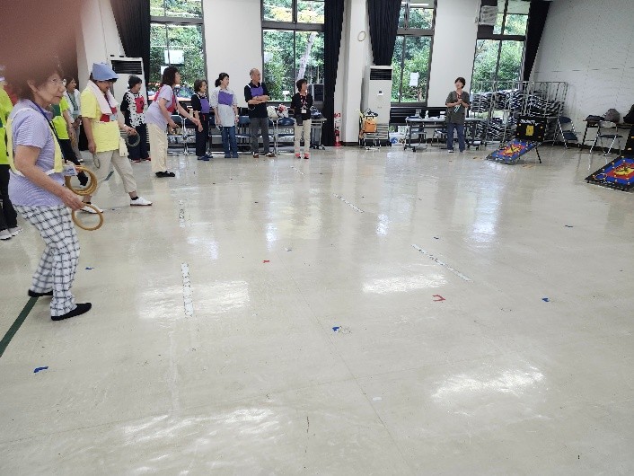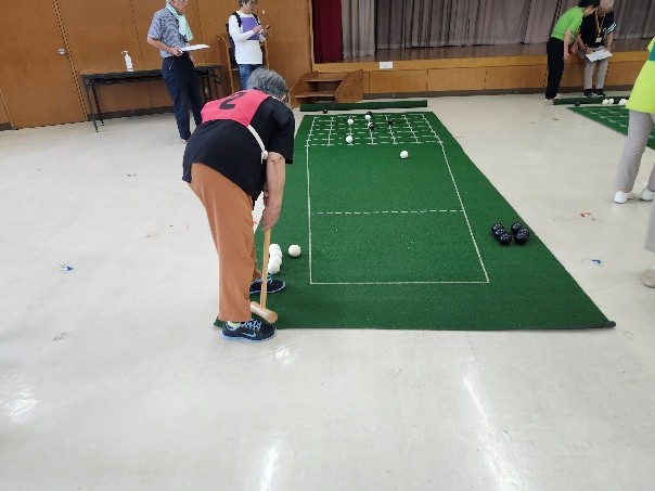 プログラムは、朝のラジオ体操に始まり、屋外ではグラウンドゴルフ、ペタンク、ツゥゲットボール、室内では囲碁ボール、クロリティー、マグダーツの計6競技を実施しました。それぞれのチームに分かれ、クラスメイトの声援と笑顔の中、軽い汗を流しながらスポーツを楽しみました。
