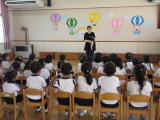 9日(月)4・5歳児はブラッシング指導に参加しました。歯科衛生士さんに来ていただき、虫歯や歯磨きについて教わりました。