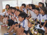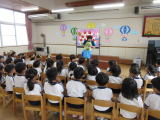 おまわりさんのお話やピンクパンサーさんの楽しい出し物で、交通ルールをしっかりと勉強しました。
