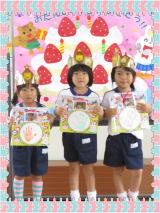 28日(月)4月生まれの誕生日会を行いました。4月は4歳児1人、3歳児2人がお誕生日を迎えました!ちょっぴりドキドキしたけれど、みんなの前でしっかりと挨拶ができましたよ!5歳児の司会の2人も頑張りました☆