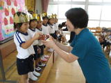 年長児5人、年中児18人のお友達が進級しました。おめでとう!!