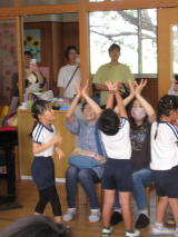 歌・ふれあい遊びなどを見てもらいました。小学生に教わった遊びを親子で一緒に楽しみました!