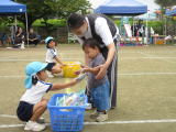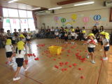 おじいちゃん・おばあちゃんと一緒に玉入れを行いました。