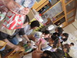 すっかり仲良くなって、膝の上にまで乗せてもらいました。最後は子ども達からのプレゼント。玄関までお見送りもしました。また来てね!!