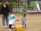 3歳児と4・5歳児がペアになって、ふれあい遊びをしました。