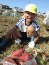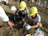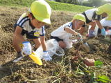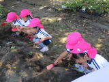8日(水)3歳児は幼稚園の畑で芋掘りを行いました。