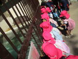 最初は3歳児と4・5歳児がペアを組んで一緒に渡りました。