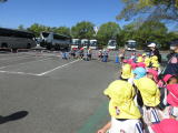 3歳児も大きい組と一緒なら安心!手をあげてしっかりと渡れましたよ!