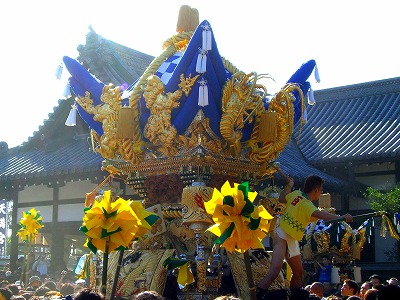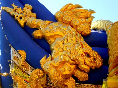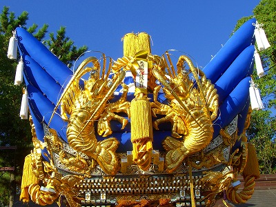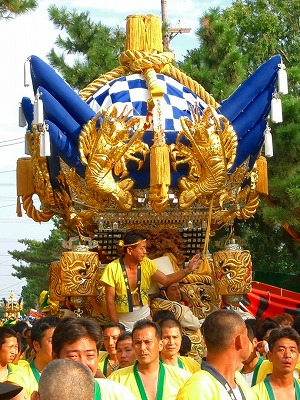 特徴:昼提灯は阿吽の龍、天幕は青と白の市松模様となっている。
